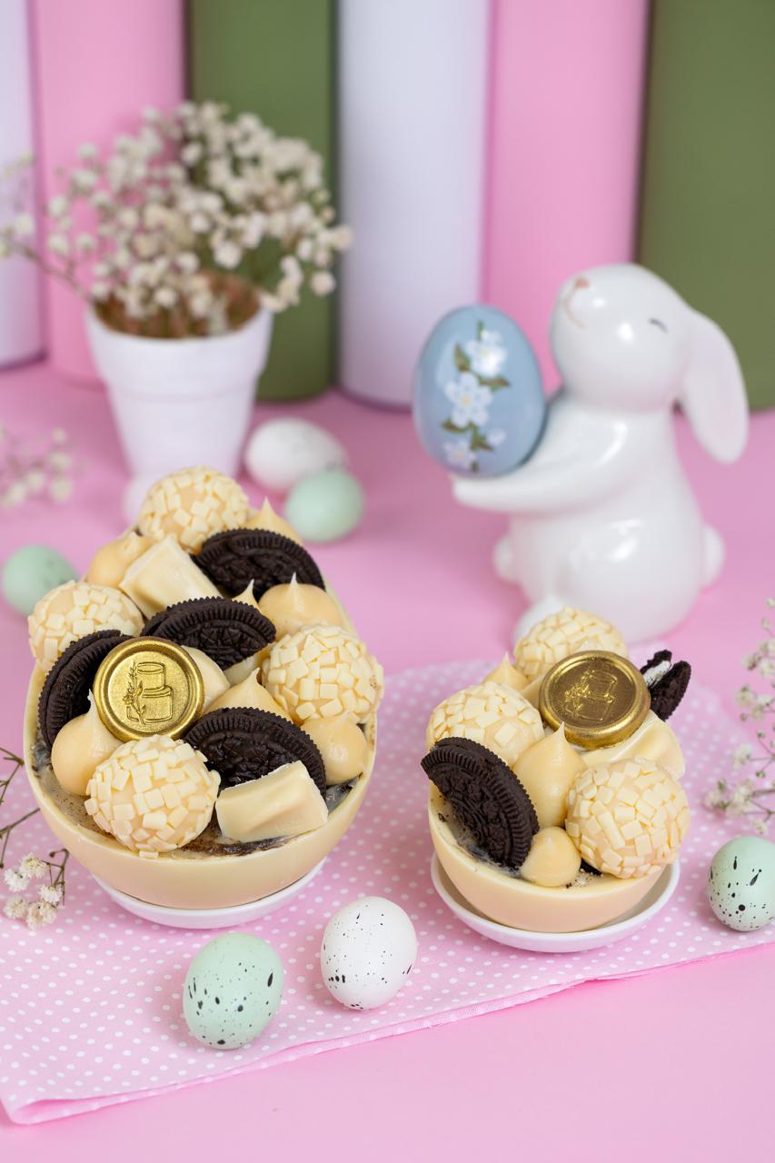 Ovo feito com casca de chocolate branco.